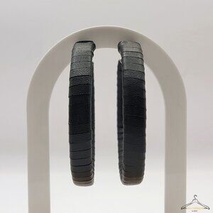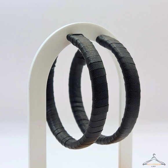 Sleek black hoops wrapped in a soft faux leather-like material. Minimal, modern, and easy to style—great for everyday wear with a touch of edge.