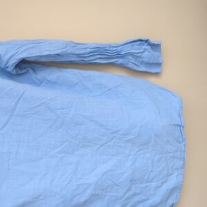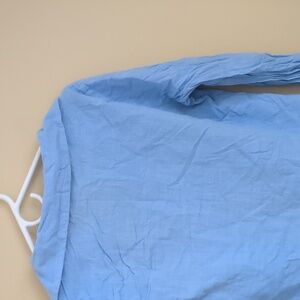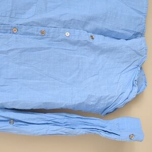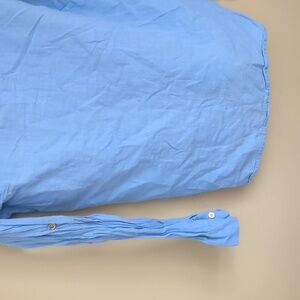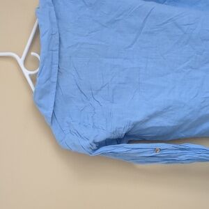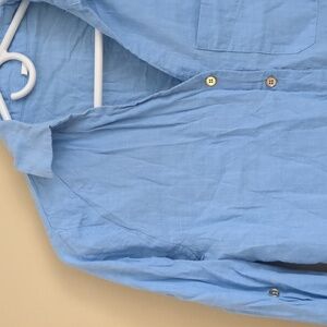 Large Blue Shein Shirt Roll Tab Sleeves Collared Button Up Gold Buttons