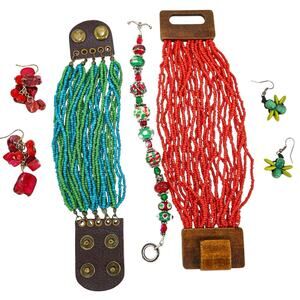 Theme and style: boho, eclectic, tribal, ethnic, festival jewelry, colorful, artisan, earthy tones, cottagecore, hippie, gypsy, bold, jewelry lot