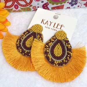 New! Large Boho Seed Bead Fan Tassel Post Drop Earring