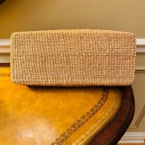 Large Boho Woven Wicker Tan Rectangular Tray Basket with Handles Organize Gift