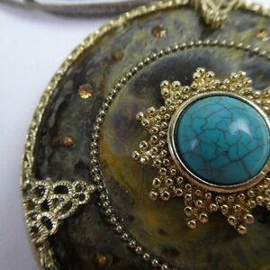 Large Boho Festival Round Pendant Turquoise Rhinestones Multi Strand Necklace