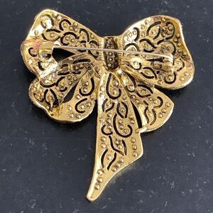 The bow is adorned with sparkly pink rhinestones in an openwork filigree setting.