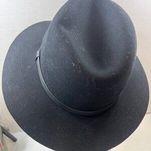 Large Brim Wool Fedora Hat Accented w/Leather Band Trim Black