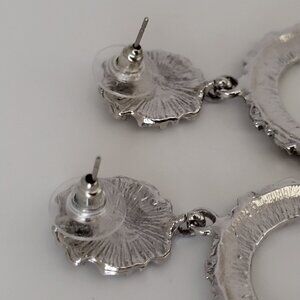 Large Brutalist metal Style Earrings Silver Tone Disc Drop Circle 2" Unsigned