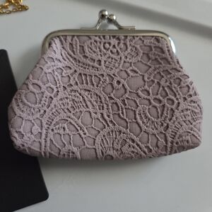 lace coin purse with silver-tone clasp and jewelry bundle.
