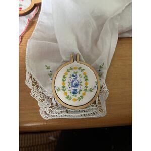 As a vintage seller I hate to see items go to waste or not be used. Over the years I noticed that many vintage handkerchiefs and linens were often thrown away or unused because we don't use them in modern applications. Someone spent a lot of time on the fiber art and I believe this artwork should continue to be enjoyed, which is why I created the pendants.