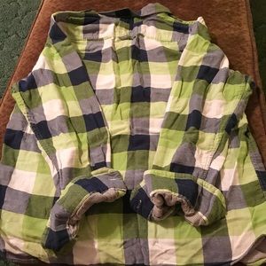 I have a large dark blue/green like new button up! Very soft, only worn a few times. Like new.