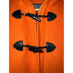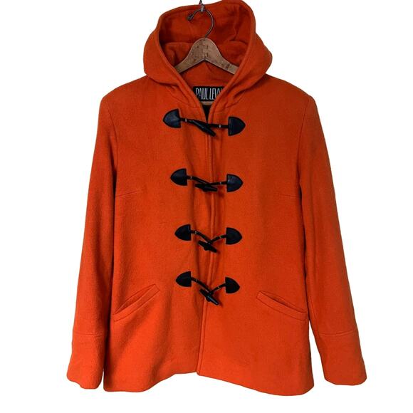 Large COAT Vintage Y2K 100% Wool Toggle Orange Pumpkin Spice Schoolgirl Hooded