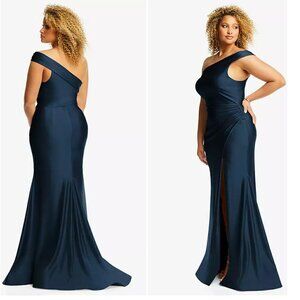 *Large - CYNTHIA & SAHAR - Satin Mermaid Dress Slight Train Navy NEW $289 msrp