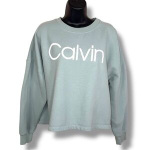 Large Calvin Klein Mint Green Sweatshirt Comfortable Loungewear Long Sleeve