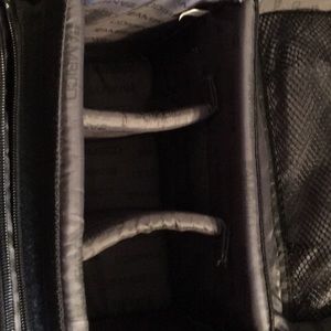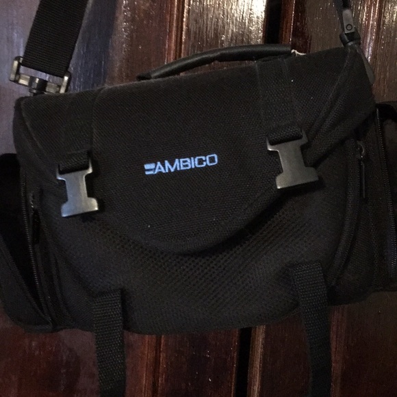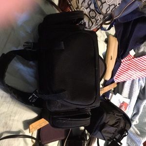 Black camera bag. Used rarely. Lots of pockets to store your stuff.