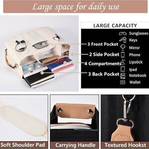 Features: This spacious tote features upgraded soft yet durable canvas, reinforced compartments, and multiple pockets—including six outer side pockets and two additional side pockets—perfect for organizing everything from a tablet and laptop to water bottles and umbrellas. The reinforced bottom keeps your belongings secure, and the easy-access design makes grabbing essentials a breeze.