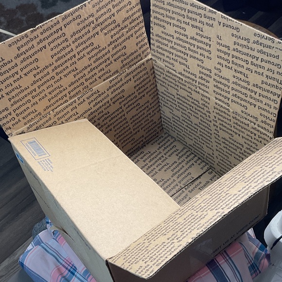 Sturdy cardboard box ideal for shipping or storage. Features printed text on the inside.