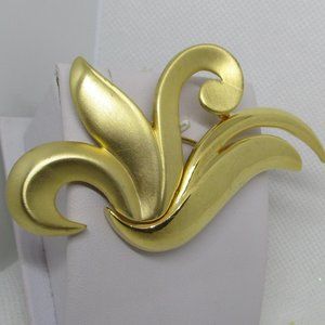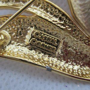 Never worn Large Casual Corner brooch matt finish gold-tone metal and gloss gold tone metal finish swirl brooch. Hallmarked Casual Corner. Due to improper storage, there is a tiny spot of gold tone loss on the back of the brooch which can not be seen on the front of the brooch. This brooch is priced accordingly.