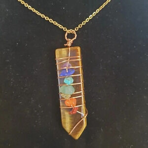 Large Cats Eye Wire Wrapped Chakra Necklace