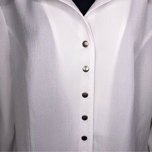 Large Christopher And Banks White Stretch Top Snap Button Closure 3/4 Sleeve