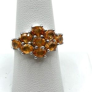 Large Chunky TGGC Sterling Silver 925 Orange Cluster Statement Ring, Size 8