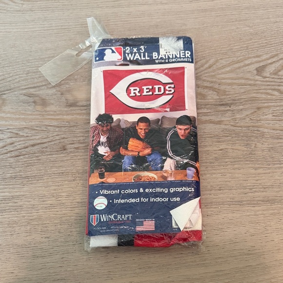 New in packaging 2 foot by 3 foot Cincinnati Reds banner with grommets comes from a pet free smoke free home. See my profile for other Cincinnati reds memorabilia to bundle