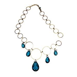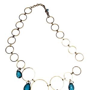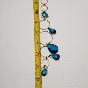 Large Circle Link Blue Plastic Rhinestone Dangle Necklace Broken 17 inches Unsigned.