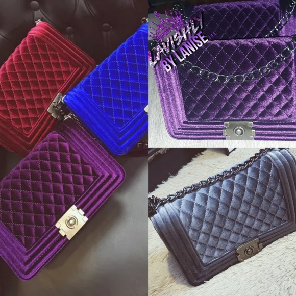 Large beautiful velvet purses available in all colors shown these purses go very fast but not to worry preorders can be made on my website if out of stock www.lavishlybylanise.com