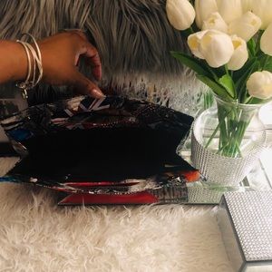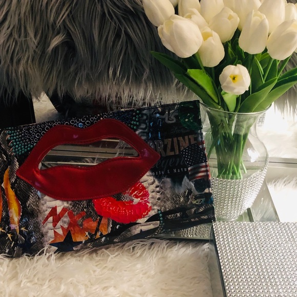 Large clutch with graffiti and red lips used a few times. Very unique