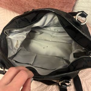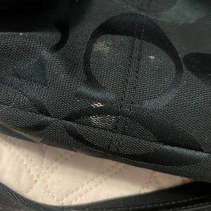 This larger Coach bag has been well loved but has lots of life yet to give! Super cute black bag with an over the shoulder strap and handles.