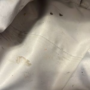 See photos for some pen and gum blemish on the interior. Also a coupe of nail polish marks outside that aren’t very noticeable.