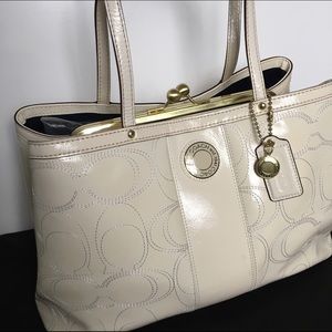 Beautiful large cream Coach purse in very good condition. Very roomy purse with plenty of compartments. This is a great work bag or perfect for someone with a lot to carry.
