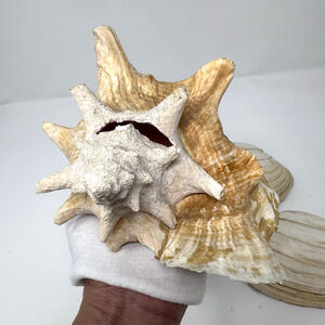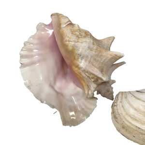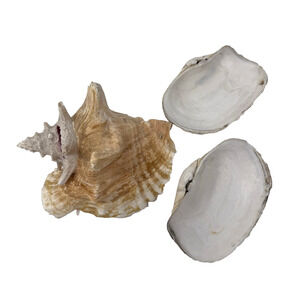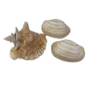 Large Conch Shell & 2 Clam Shells Lot Natural Sea Shells Beach Coastal Decor