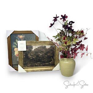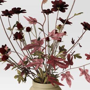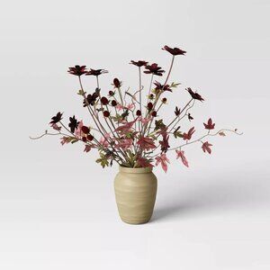 Elevate your home decor with the Large Cosmos and Thistle Potted Arrangement from Threshold. This large decorative arrangement showcases faux cosmos and thistle stems in red hues potted inside a neutral-tone dolomite container. is the perfect addition to your fall decor collection. Just place it in on a tabletop in any room for the perfect addition to your fall decor.