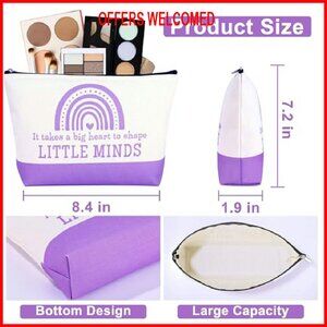 Large Cotton Canvas Tote Bag with Makeup Case, Perfect for Teachers & Daily Use