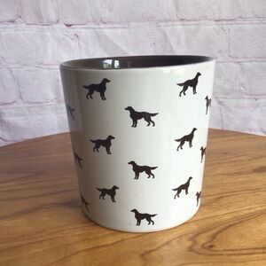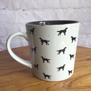 This charming mug features a delightful pattern of dog silhouettes in cream and brown, perfect for adding a touch of whimsy to your drinkware collection. The design captures the essence of sporting dogs with their distinctive alert stance, making it an ideal choice for any dog enthusiast. Enjoy your favorite beverage in style with this unique and playful mug. This mug measures approximately 4 1/8” tall, 5 1/2” wide including the handle. Pre-owned condition. No cracks or repairs. There is a very small chip as shown on the top rim. There are some scuffs / marks as shown. Smoke free home.