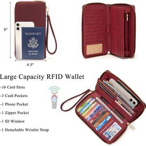 Wallet clutch--dimension:8.5''x4.5''x1'';RFID Blocking can protect personal information;easily holds 25 pieces of paper money,16 cards, ID card and an 6.5" iPhone and passport, pen, checkbook,etc.
