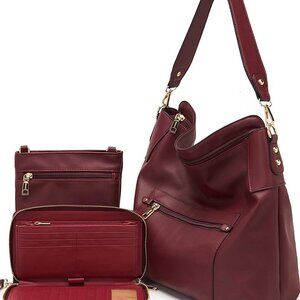 Fashion Purses Sets For Women Packing list Shoulder bags + Crossbody bags + Wallet clutch Purse color Black/Brown/DarkBrown/DarkGrey/SkyBlue/Beige/Grey/DeepRed/Taupe/NavyBlue/RosePink/ Material Synthetic leather is made resistant to water penetration and has a high fade resistance and it didn't hurt any animals. perfect gift high-quality fashionable purse set is very suitable as gifts for