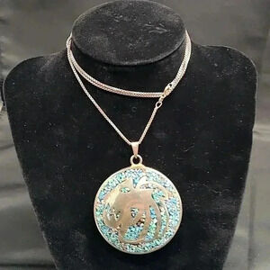 Large Crush Turquoise and Abalone Pendant with 30" Sterling Silver Necklace