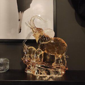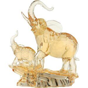 Large Crystal Elephant Sculpture with Baby Elephant, Golden Accents