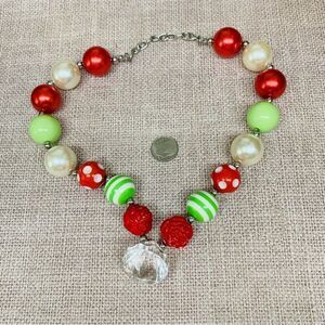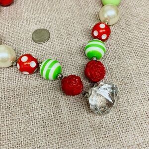 Large Crystal Red Green Pearl Bubblegum Necklace