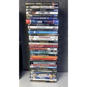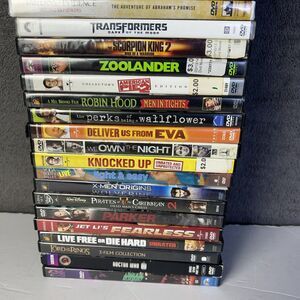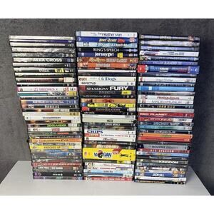 This large DVD lot of 105 movies includes a variety of genres such as horror, comedy, drama, workout, and action. The movies come in NTSC format with a tall/DVD case packaging, featuring actors like Adam Sandler, Tom Hanks, and Tom Cruise. The special edition and limited edition DVDs from 20th Century Fox include additional scenes and are presented in both full screen and widescreen formats, suitable for viewers in regions with DVD Region Code 1 (US, Canada). Subtitles are available in English, French, and Spanish, making it an extensive collection for movie enthusiasts.