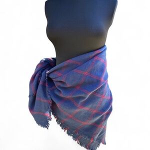 Xtra large soft dark blue and red plaid scarf with small fringe. In excellent condition #plaid #winteraccessories #travelscarf