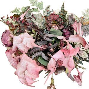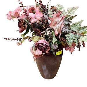Large Decorative Vase With Artificial Floral Arrangement Pink & Green Silk Flowe