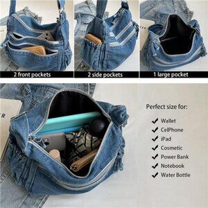 Multi-pocket design: large casual crossbody has multiple pockets and compartments design which has enough space to store ours daily essentials and keep everything organized. the denim tote bag is perfect for dates, travel, parties, shopping and work.