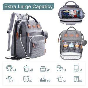 🧿Lightweight and Thoughtful - The diaper backpack is made of selective materials and proficient handcraft, such as waterproof Oxford fabric, smooth zippers and reinforced sewing. It makes the on-the-go trip much more easier with a lightweight backpack diaper bag. The diaper bag backpack is perfect with its considerate design as cushioned shoulder straps, padded back panels, USB port and etc.