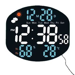 Large Digital Wall Clock Weather Station Forecast TEMP Humidity Date Week Night