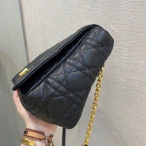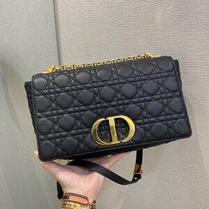 Can fit a small bag, a phone, a cardholder, sunglasses, and lipstick