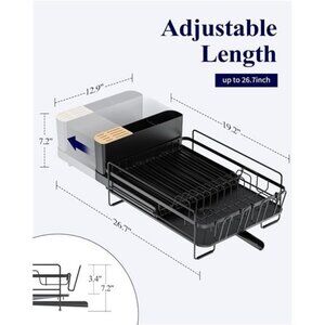 🧿EXTENDABLE RACK: Kitsure kitchen dish drying rack with an extendable design can be adjusted to fit different kitchens. It measures 19.2" to 26.7" in length, and from 12.9" W *7.2" H . Please choose the appropriate size according to the length of your kitchen countertop.