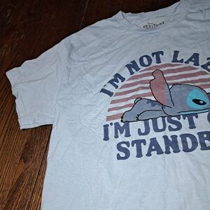 Large Disney Stitch Cotton Short Sleeve Tee TShirt Top Not Lazy on Standby