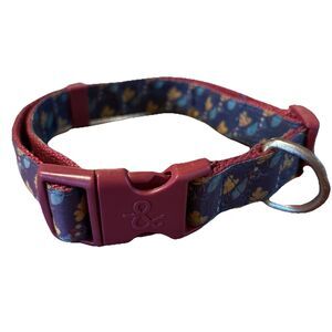 Large Dog Collar Blue Nylon Leaf Print 16”-22” Plastic Clasp Metal D-ring