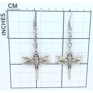 Large Dragonfly Earrings Silver Tone Statement Bug Jewelry