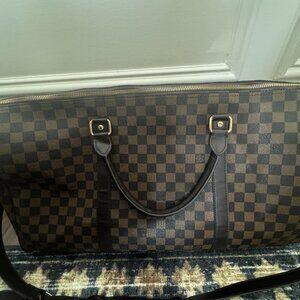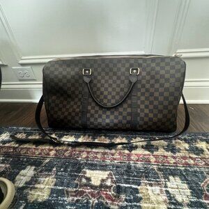 Large Duffel Top Handle With Crossbody Strap Brown Check LV